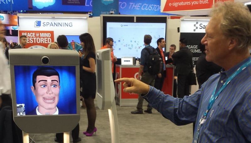 The Cadillac of remote telepresence devices is the Beam Pro by Suitable Technologies of California, and they hosted a fun appearance by Brash at the 2014 Dreamforce exhibit hall.