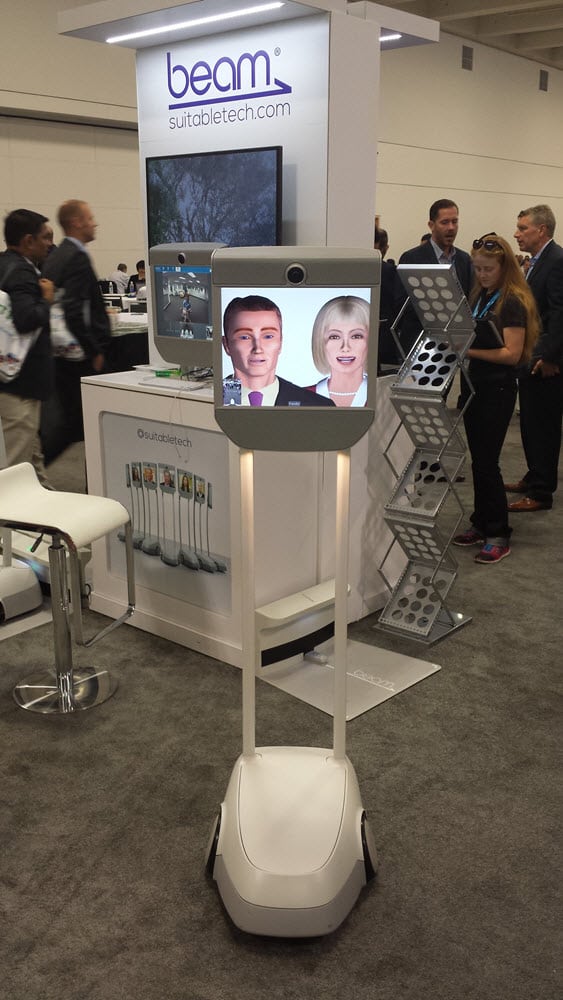Gary operated the Beam from his office in Nevada and appeared on the trade show floor in California, able to move around, visit booths and say hello to exhibitors and attendees.