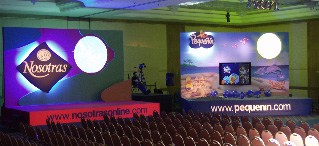 Aside from the flub in the slide show, the night went perfectly and the audience never knew anything went wrong, Neira said. “It was pretty easy to stage, considering, and our team did everything right to make it work perfectly.” The AV company, Eleven Produciones, supplied the video routing and projection systems. Jesch and the actors rehearsed the entire show with the corporate executives once, the day of the show.